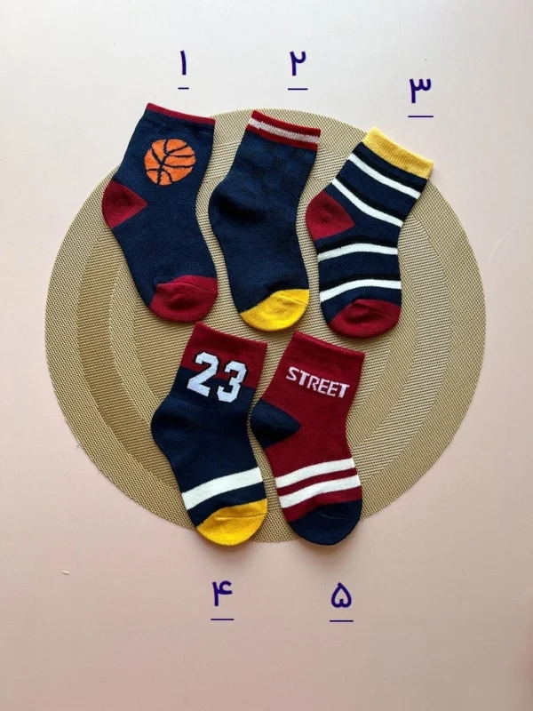 جوراب مچی بچگانه بسکتبال از جنس نخ پنبه، موجود در 5 طرح زیبا و جذاب. (سایز S) اندازه کف 13 سانت با کشش 17 سانت، اندازه ساق 7 سانت. (سایز M) اندازه کف 14 سانت با کشش 19 سانت، اندازه ساق 8 سانت. (سایز L) اندازه کف 16 سانت با کشش 21 سانت، اندازه کف 10 سانت.
