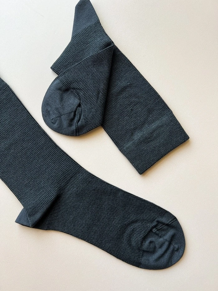 جوراب ساق بلند مردانه طرح بافت ریز ذغالی از جنس نخ پنبه بامبو 90%،فوق العاده نرم و راحت است و تهویه مناسب برای پا دارد، دارای آنتی باکتریال و همچنین تقویت شده در پاشنه و پنجه است (تراکم بافت بسیار فشرده و محکم است).