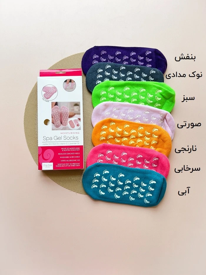 جوراب زنانه مچی سیلیکونی اسپا مرطوب کننده و ترمیم کننده پاشنه موجود در 7 رنگ زیبا و جذاب بنفش، نوک مدادی، سبز، صورتی، نارنجی، سرخابی و آبی. جوراب زنانه مچی سیلیکونی ساخته شده از جنس سیلیکون پزشکی، فقط روزی 20 دقیقه مراقبت کافیه تا پاهای خشک و ترکخورده به نرمی و لطافت برسند. این جورابها با ژل فعال داخلی، حاوی روغن جوجوبا، روغن زیتون، ویتامین E و روغن اسطوخودوس هستند که رطوبت را در پوست قفل کرده و پوست پا را نرمتر، لطیفتر و انعطافپذیرتر میکنند.این محصول برای آبرسانی، ترمیم پاشنه ترکخورده و جلوگیری از خشکی و ضخیم شدن پوست پا طراحی شده است. مناسب برای سایز 36 تا 42.