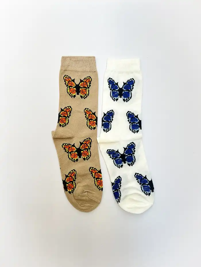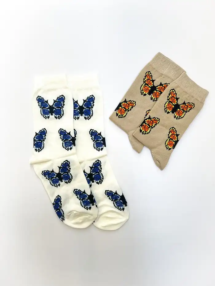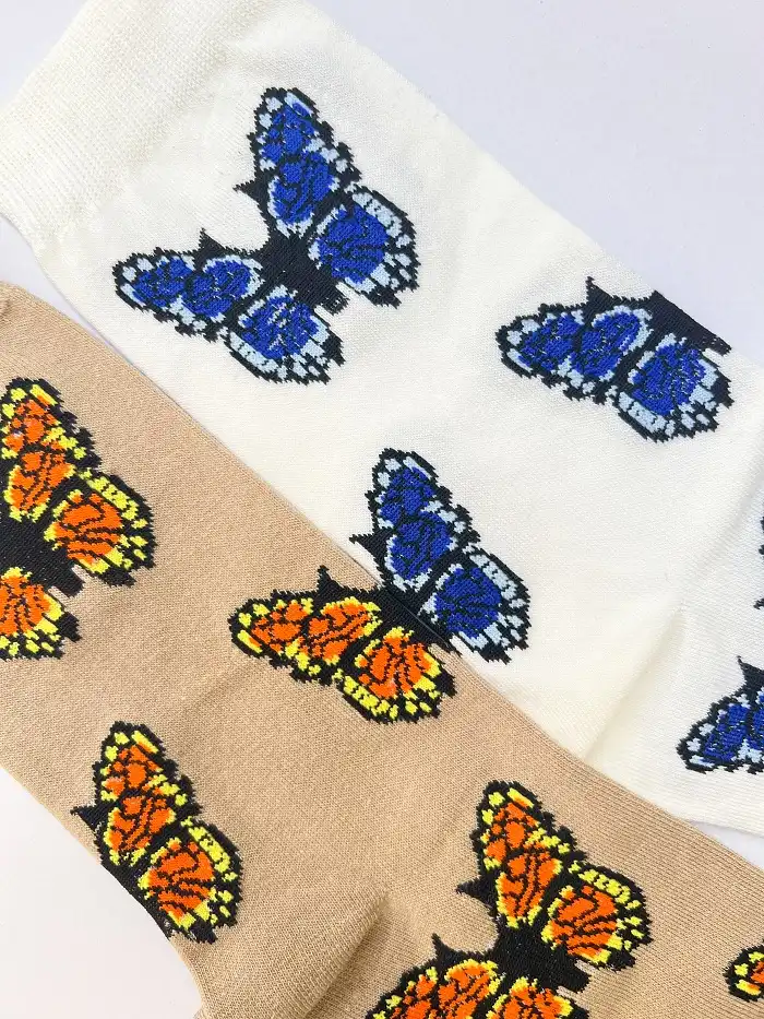 ترکیب رنگهای زنده و طراحی دقیق پروانهها، جلوهای خاص و متفاوت به استایل شما میده. جنس جوراب از نخ کتان نرم با درصدی اسپندکس ساخته شده که علاوه بر نرمی و لطافت، کشسانی و دوام بالایی هم داره.