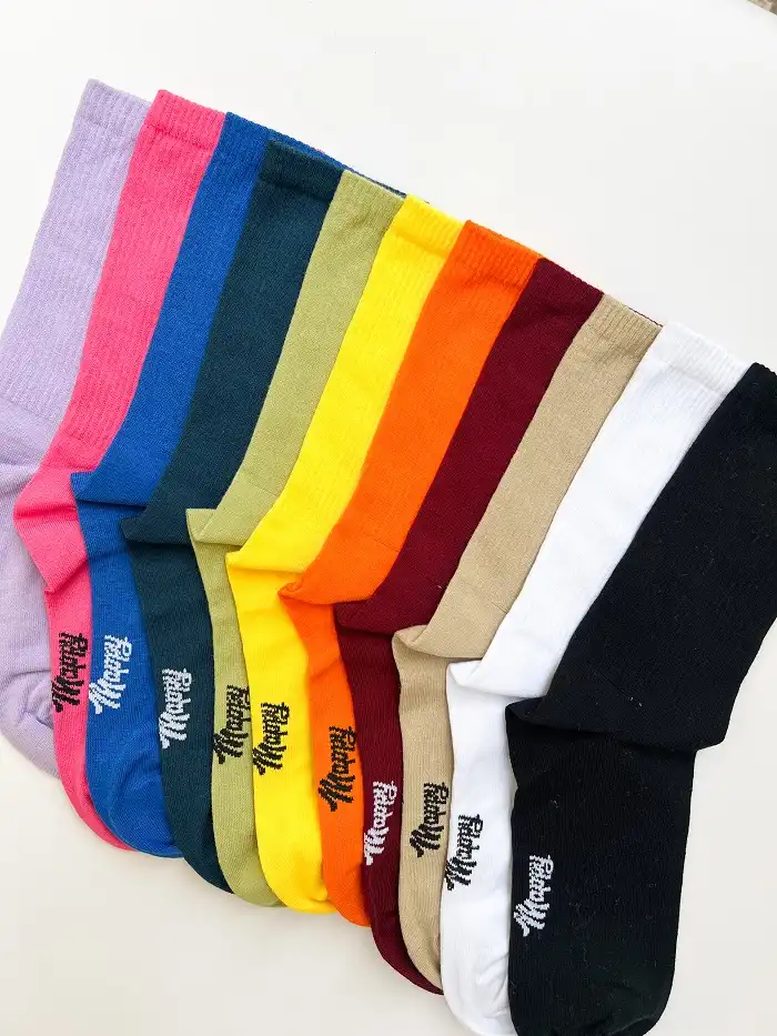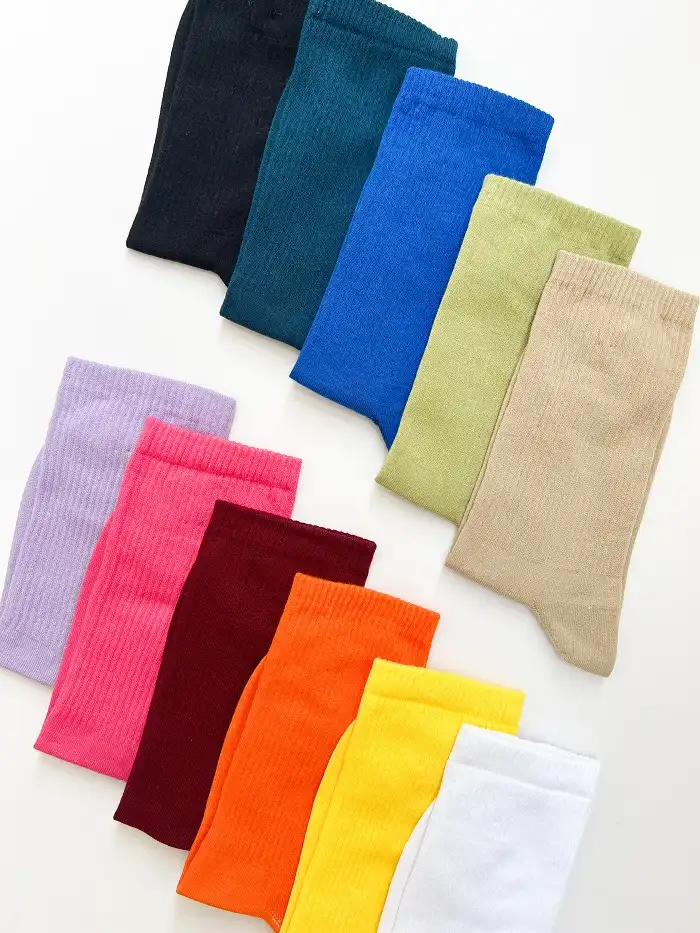 جوراب ساق بلند ساده رنگی یونیسکس از جنس نخ کتان (با درصدی اسپندکس برای کشسانی و دوام).موجود در 11 رنگ زیبا و جذاب سفید،زرد،نارنجی،زرشکی،صورتی،یاسی کرمی،سبز زیتونی،آبی،سرمه ای و مشکی. مناسب برای چهار فصل و استایل اسپرت / روزمره / مینیمال