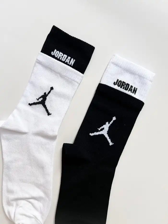 جوراب ساق بلند اسپرت دو کش جردن از جنس نخ پنبه، موجود در 2 رنگ کاربردی مشکی و سفید، مناسب برای سایز 36 تا 42، قابل استفاده برای خانم ها و آقایان.