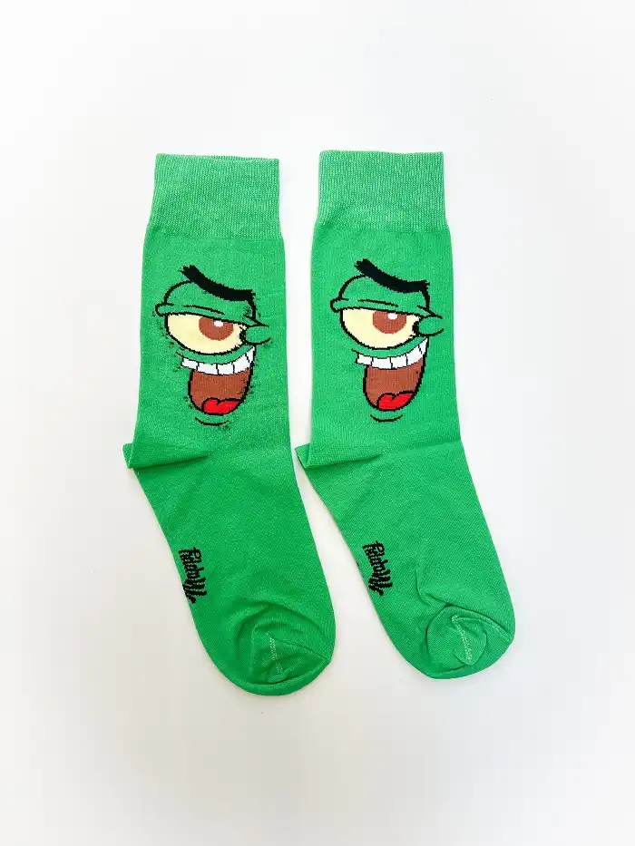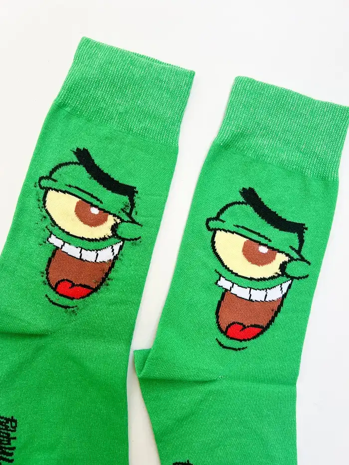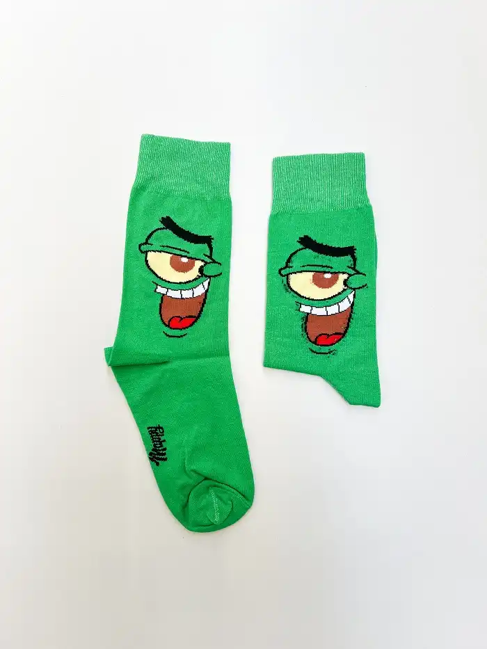 «جوراب ساق بلند کارتونی پلانکتون یونیسکس آپامه، الهامگرفته از شخصیت بامزه و شیطون انیمیشن باباسفنجی (SpongeBob SquarePants) است. رنگ سبز روشن جوراب در کنار طراحی چشم تکچشم و لبخند خاص پلانکتون، آن را به انتخابی متفاوت و پرانرژی برای استایل روزمره تبدیل کرده است.
