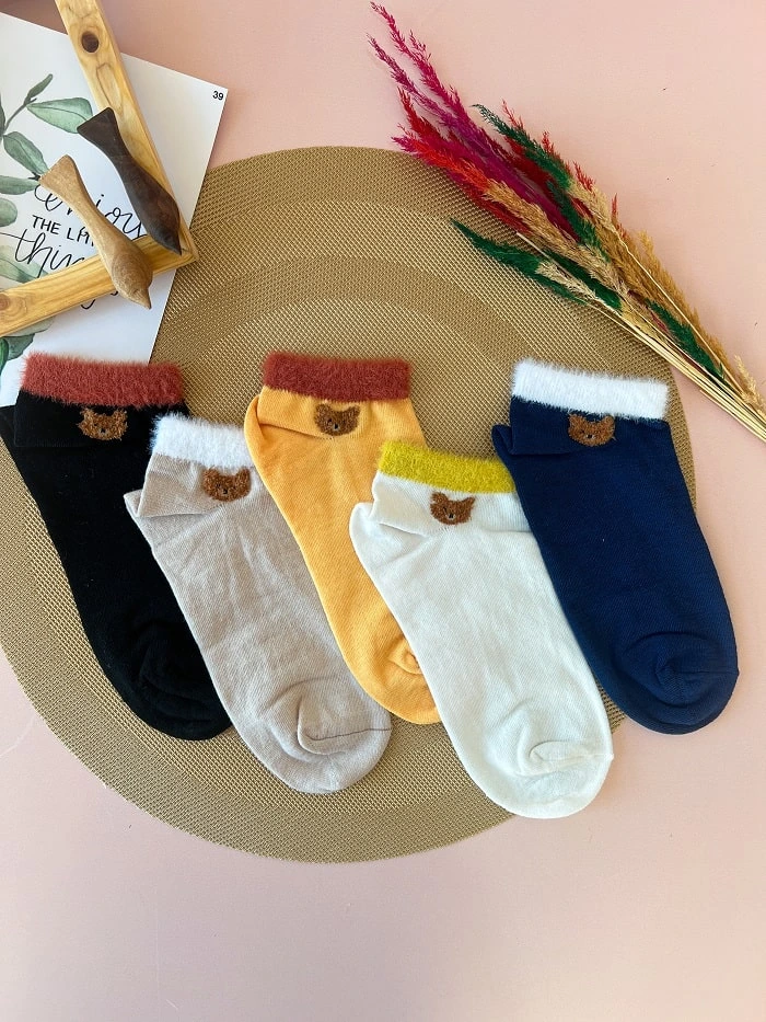 جوراب مچی تدی لبه موهر،از جنس نخ و مجود در 5 رنگ زیبا و جذاب زرد،سفید،کرمی،سرمه ای و
