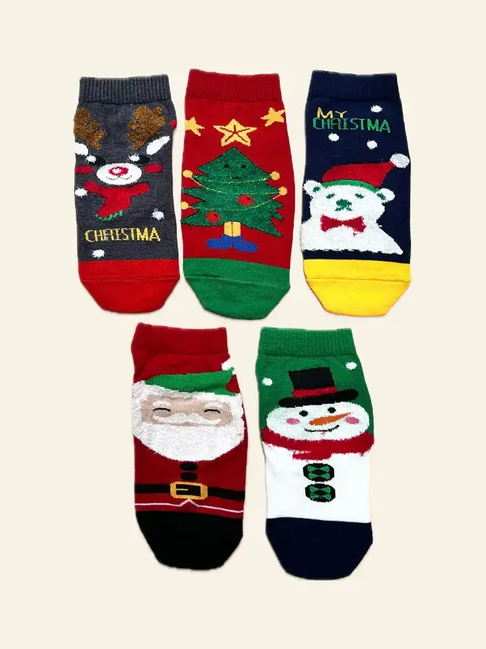جوراب مچی زنانه بوکله کریسمسی، انتخابی گرم و دوستداشتنی برای روزهای سرد زمستان و حالوهوای شاد کریسمس است. طراحی فانتزی با شخصیتهای محبوب زمستانی مثل گوزن، درخت کریسمس، خرس قطبی، بابانوئل و آدمبرفی، این جوراب را به گزینهای جذاب برای استفاده روزمره، هدیه دادن و ستهای زمستانی تبدیل کرده است.