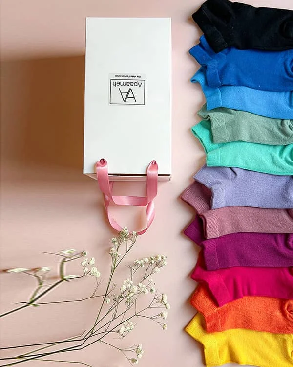 جوراب مچی مدال ساده دخترانه و زنانه برند آپامه تهیه شده از الیاف طبیعی درخت راش بوده که قابلیت تبخیر بالایی دارد. اگر در طول روز زمان زیادی کفش به پا دارید جوراب گیاهی مدال بدونساق، نرم و لطیف مخصوص شما است!