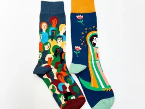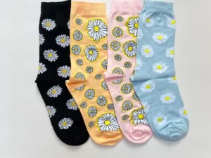 جوراب ایرانی دخترانه ساق بلند طرح روباه با جنس نخ پنبه.