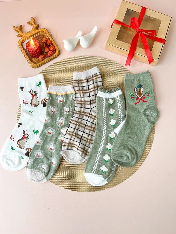 جوراب ساق بلند ست سبز خرگوشی موجود در 5 طرح زیبا و جذاب،جنس نخی،مناسب برای سایز 35 تا